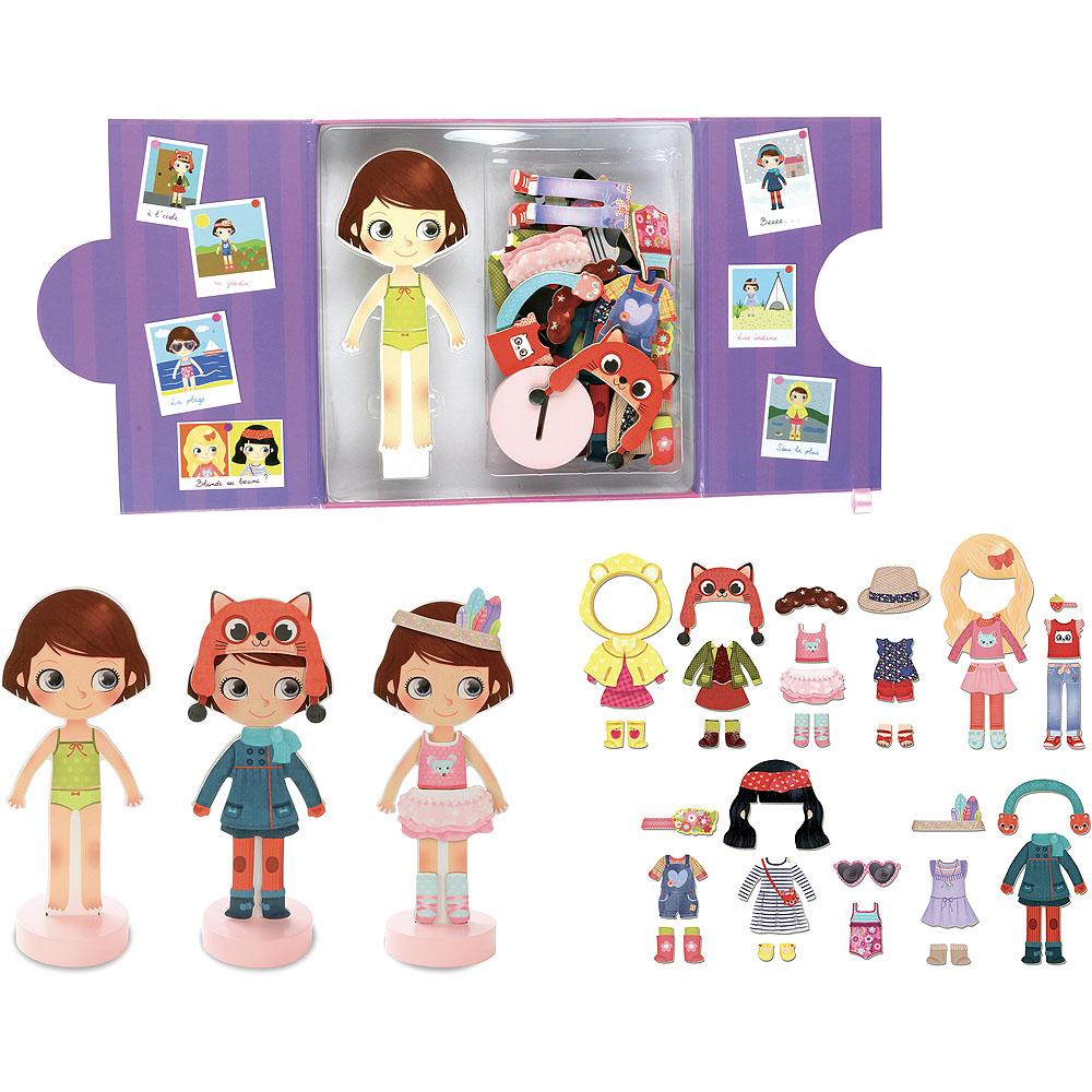Habille Chloé avec de jolis vêtements et accessoires magnétiques en bois.