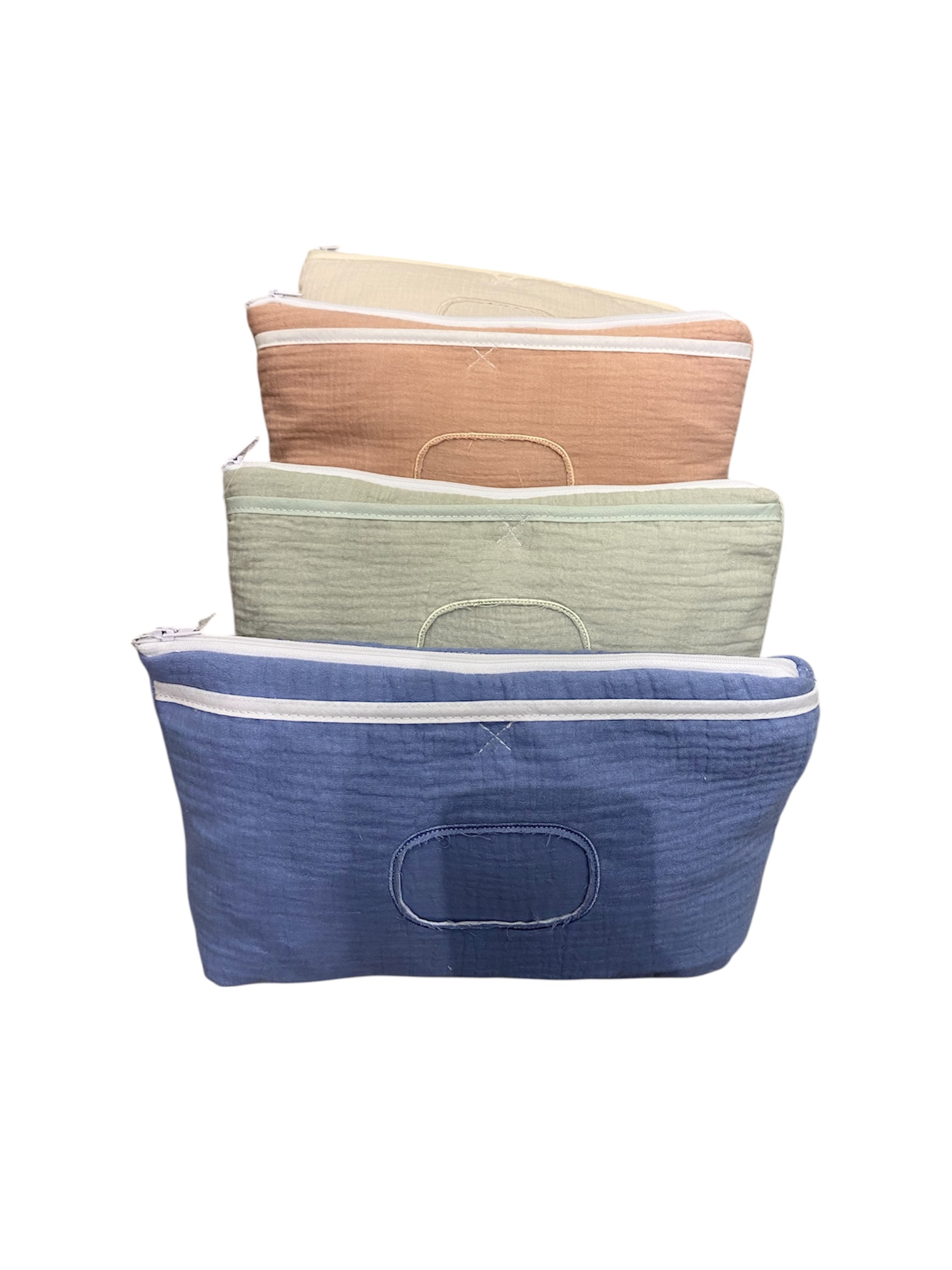 Rangez vos lingettes avec praticité et élégance grâce à ces étuis en gaze de coton, dotés d’une pochette de rangement intégrée.