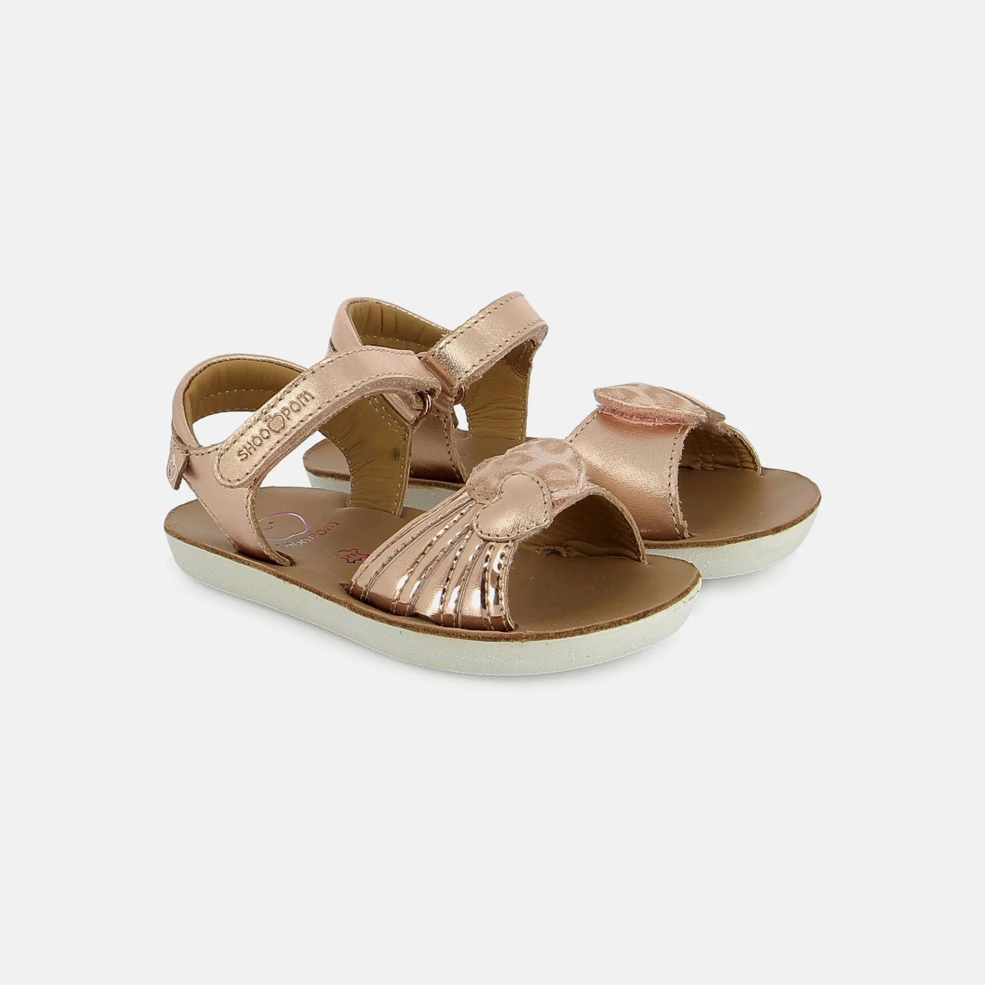 Cette sandale en cuir pour enfants est un indispensable de la saison estivale. Sa semelle extérieure est résistante, légère et souple. Sur la bride avant, son empiècement cœur métallisé et imprimé a été personnalisé en interne. Pratique à chausser, cette chaussure est dotée d’une bride à scratch à la cheville ainsi que d’une bride avant, également réglable par scratch. Pensée et développée avec expertise par notre bureau d’études en Vendée, cette chaussure réunit qualité, confort et savoir-faire Shoo Pom.